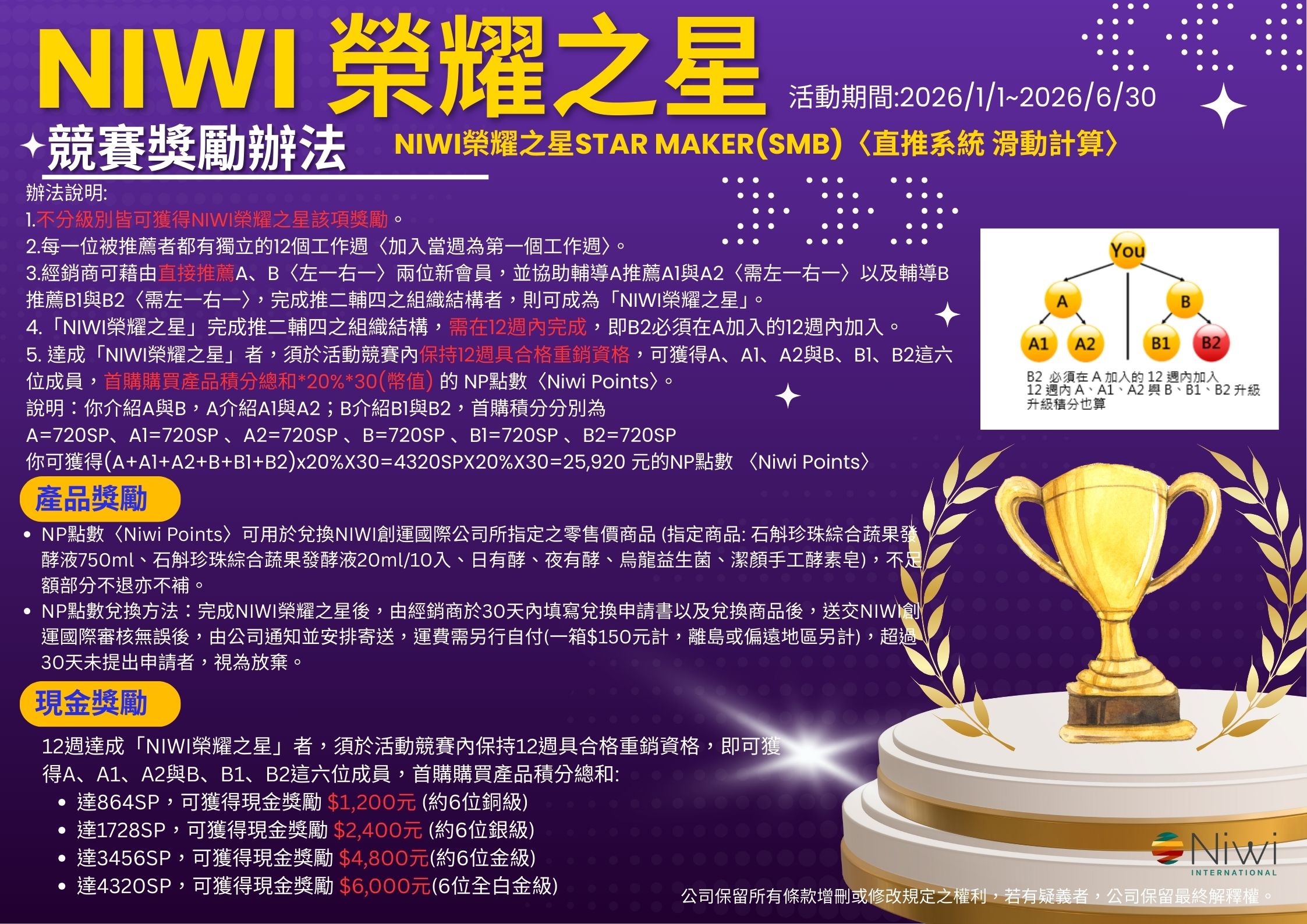 NIWI 榮耀之星競賽獎勵辦法 STAR MAKER🏆